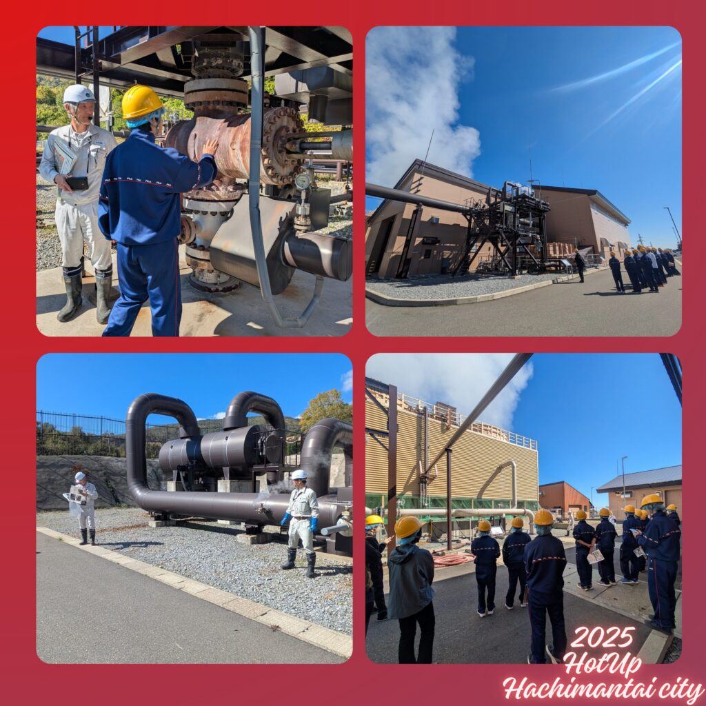 私たちの生活を支えるエネルギーの源が、まさに地元・八幡平にあることを強く実感しました。その後、発電所内部の見学を行い、地熱が電気に変わる場所に足を踏みいれ、「地熱エネルギーのリアル」を目の当たりにしました。
